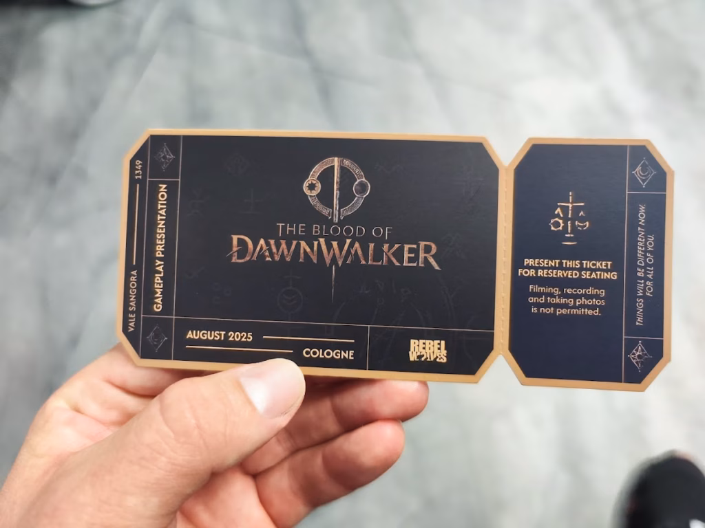 Ich fühlte mich wie Charlie mit seinem goldenen Ticket zur Schokoladenfabrik: Mit der Eintrittskarte zur Präsentation von The Blood of Dawnwalker in der Business Area der Gamescom Halle 4.2 wartete auf mich ein Erlebnis, das ich so schnell nicht vergessen werde. Mit dem Ticket in der Hand betrat ich einen Raum, der wie eine mittelalterliche Kirche gestaltet war – mit kunstvollen Buntglasfenstern, hohen Gewölben und einer Atmosphäre, die mich sofort in ihren Bann zog.
