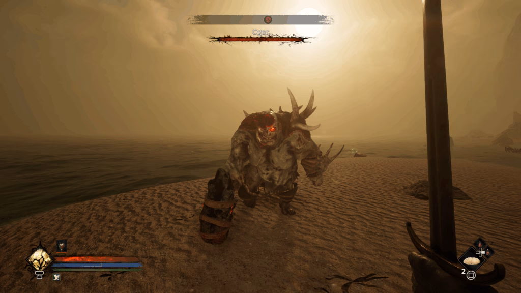 Das Kampfsystem ist komplex und anspruchsvoll. Es handelt sich um ein Echtzeit-Action-RPG in der First-Person-Perspektive, das oft mit dem Elder-Scrolls-Stil verglichen wird, aber deutlich mehr Impact und Souls-ähnliche Elemente bietet. Jeder Nahkampfangriff, jede Fähigkeit und jeder Block kostet Ausdauer, was dich dazu zwingt, jeden Zug strategisch zu planen. Button-Mashing ist keine Option, denn du wirst schnell scheitern, da jeder Gegner über unterschiedliche Angriffe verfügt, die du mit gut getimten Paraden oder Ausweichdashs blocken oder kontern musst. Dieses anspruchsvolle System aus Ausdauer-Management, Parieren und gezieltem Schlagen ist die ständige Herausforderung in den Kämpfen gegen die Bestien des Wyrd.