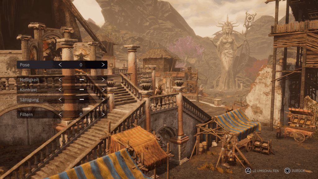 Ein kleines Highlight ist der Fotomodus. Er ist zwar nett, aber nicht wirklich atemberaubend und bietet nur grundlegende Funktionen: Du hast Zugriff auf drei Filter, eine Zoom-Funktion, ungefähr ein Dutzend Posen für den Helden und einfache Regler für Helligkeit, Kontrast und Sättigung. Man kann die Kamera frei bewegen, was gut ist. Trotz des begrenzten Umfangs ist es für die Community eine willkommene Dreingabe, denn ein einfacher Fotomodus ist immer noch besser als gar keiner.