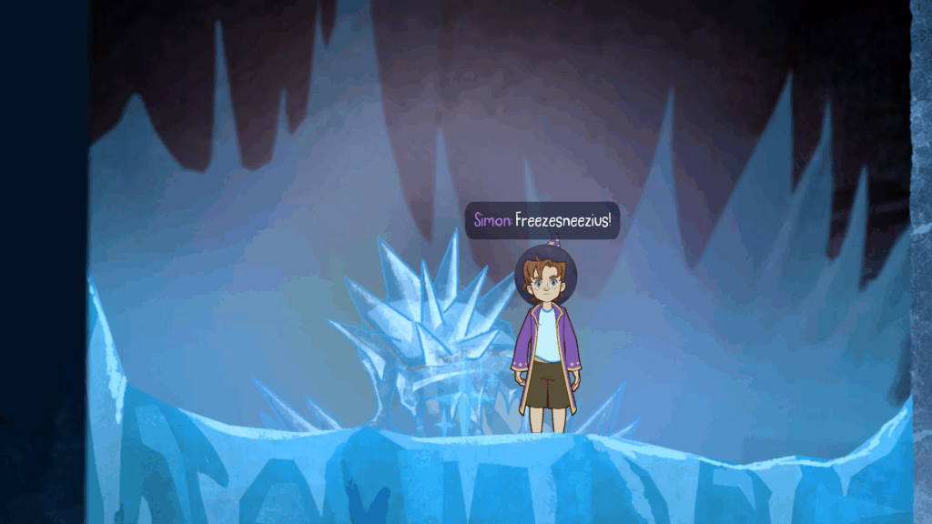 Zudem kann man mit Simon selbst auch noch interagieren. So kann man Items aus dem Inventar an ihm anwenden oder gar Zauber ausprobieren, wobei die Zauber noch eine wichtige Rolle einnehmen. Simon lernt als angehender Magier natürlich auch Zaubersprüche wie Feuer, Wind und Eis. Die Elementarzauber lassen sich, wie andere Gegenstände aus dem Inventar, mit Objekten in der Umgebung nutzen, um Rätsel zu lösen. Werden die Zauber zusätzlich noch folgerichtig mit Simon kombiniert, dann verwandelt sich Simons Hut in eine magische Version, wodurch sich auch einige Gegenstände nochmal verändern und dadurch zur Lösung einiger Rätsel genutzt werden müssen.