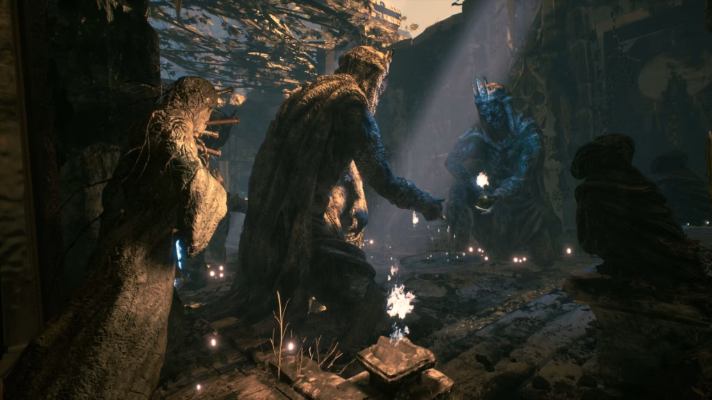- Der „Ancient Gauntlet“: Dieses urzeitliche Relikt dient als zentrale Spielmechanik. Es fungiert im Nahkampf als Waffe gegen entstellte Kreaturen und gleichzeitig als Werkzeug, um mit der Umgebung zu interagieren. Die Nutzung ist jedoch an begrenzte Energieressourcen gebunden.