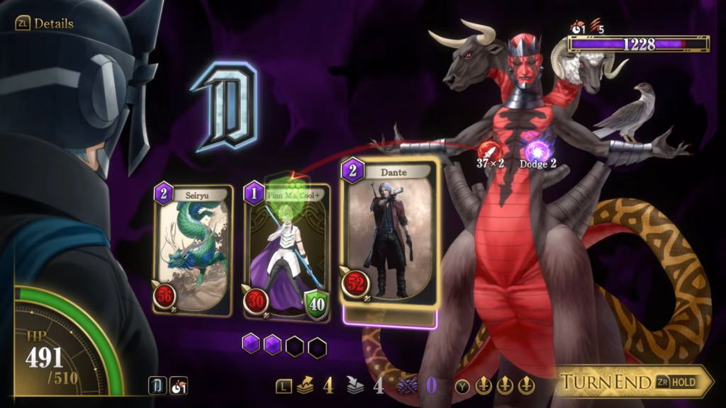 - Dante („STYLISH RANK“): Wie im Actionspiel steigert Dante seinen Rang mit jedem Treffer pro Zug. Je höher der Rang, desto massiver steigt die Angriffskraft aller Karten auf eurer Hand.